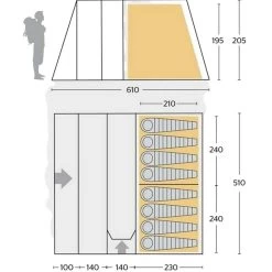 Rather than the industry standard of 60cm width per person for sleeping compartments, Outwell Sleep Comfort allows 70-80cm for more freedom and suggest that 4 people can settle down comfortably for a great night’s sleep.