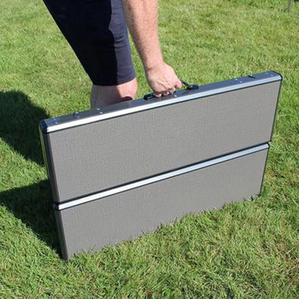 A more compact pack size is achieved with both the table and benches folding totally flat, with the benches protected inside the table then fitting neatly into the supplied branded compact carry bag for ease of portability and storage.